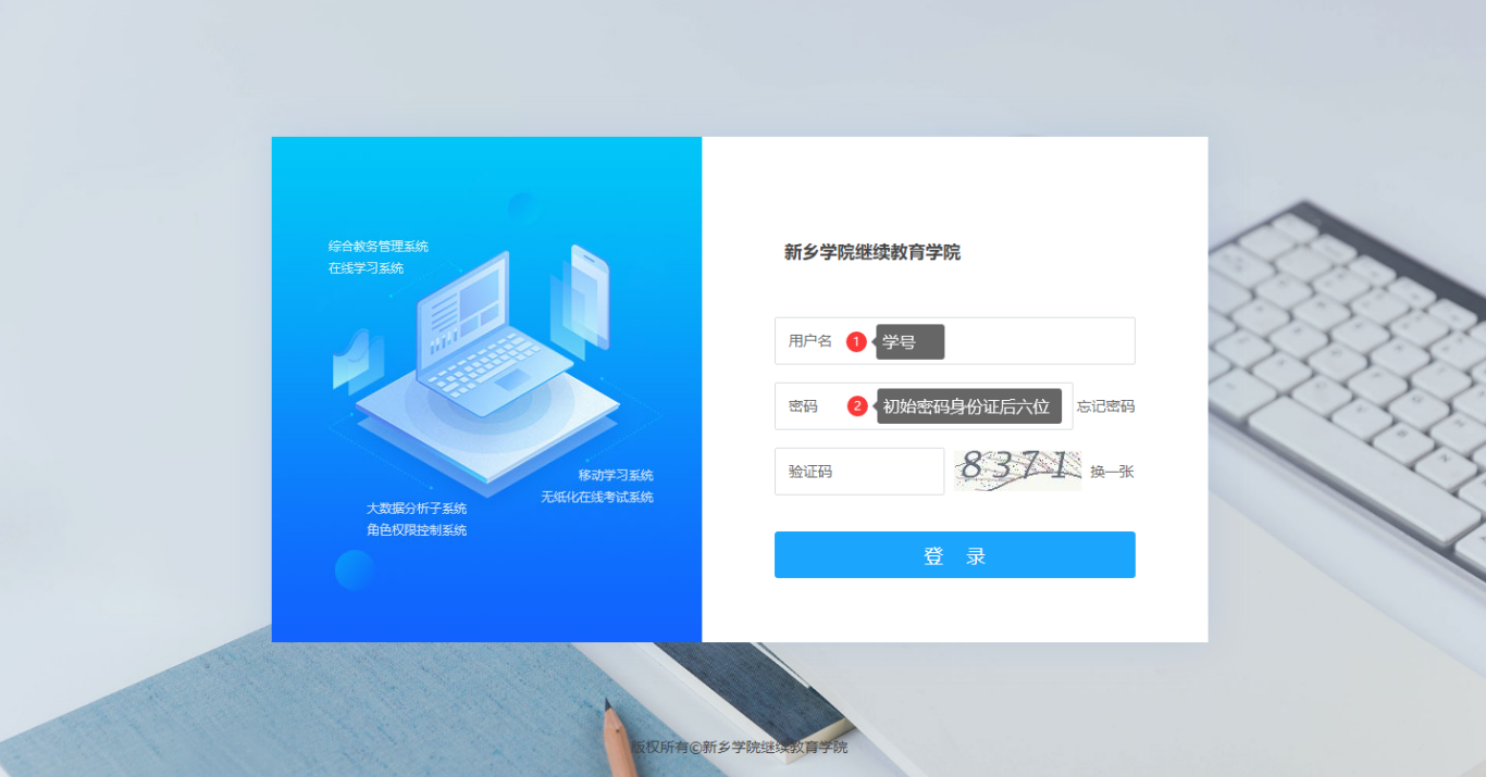 用户名为学号(202XXXXXXX)。初始密码为身份证号后6位,进入学习平台系统后,可以修改密码。